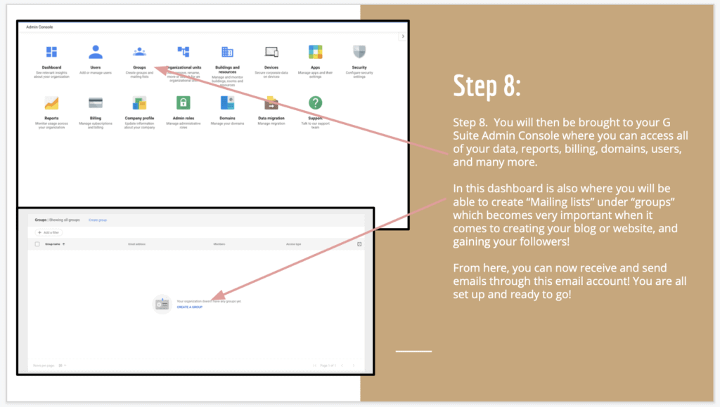 You will then be brought to your G Suite Admin Console where you can access all of your data, reports, billing, domains, users, and many more.