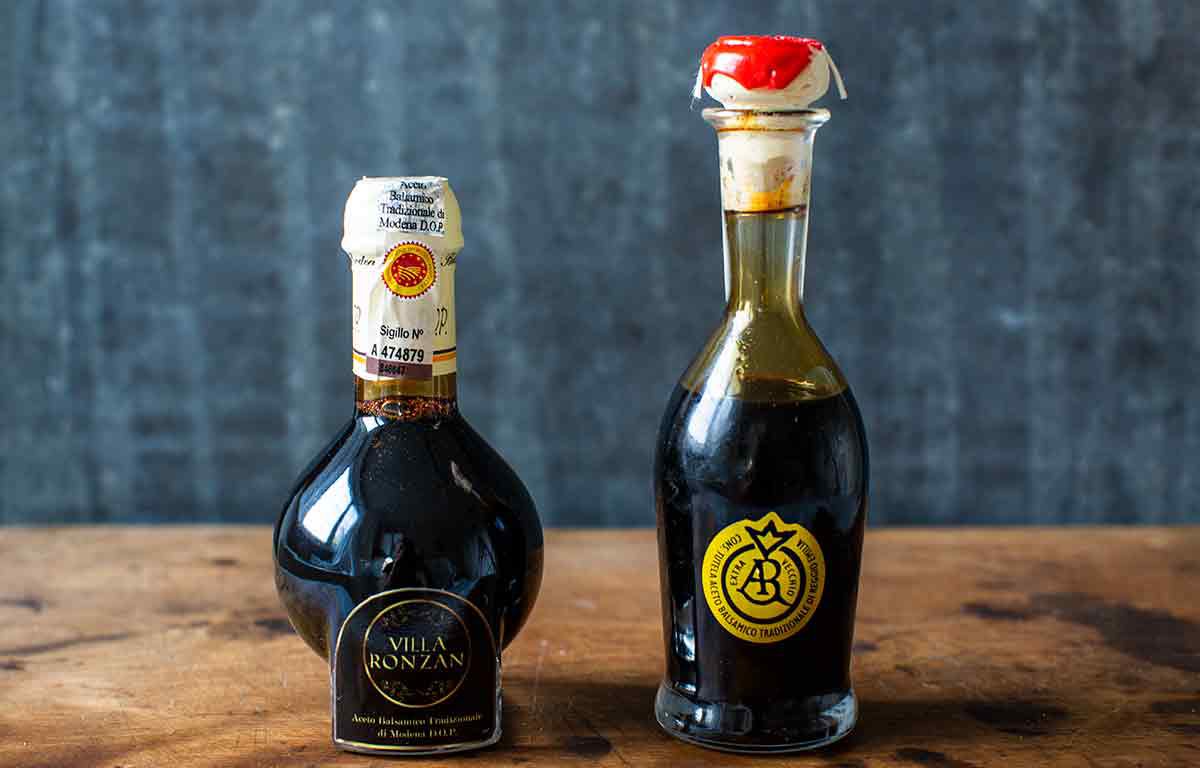 - Traditional balsamic vinegar — Small batch, highly crafted balsamic vinegar that can cost anywhere from $50 to $200 and more for a small bottle, available online and at specialty stores. If it has the DOP or PDO label (Protected Designation of Origin), it is from either Modena or Reggio Emilia and conforms to strict EU production regulations.