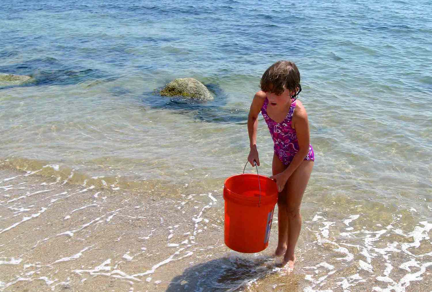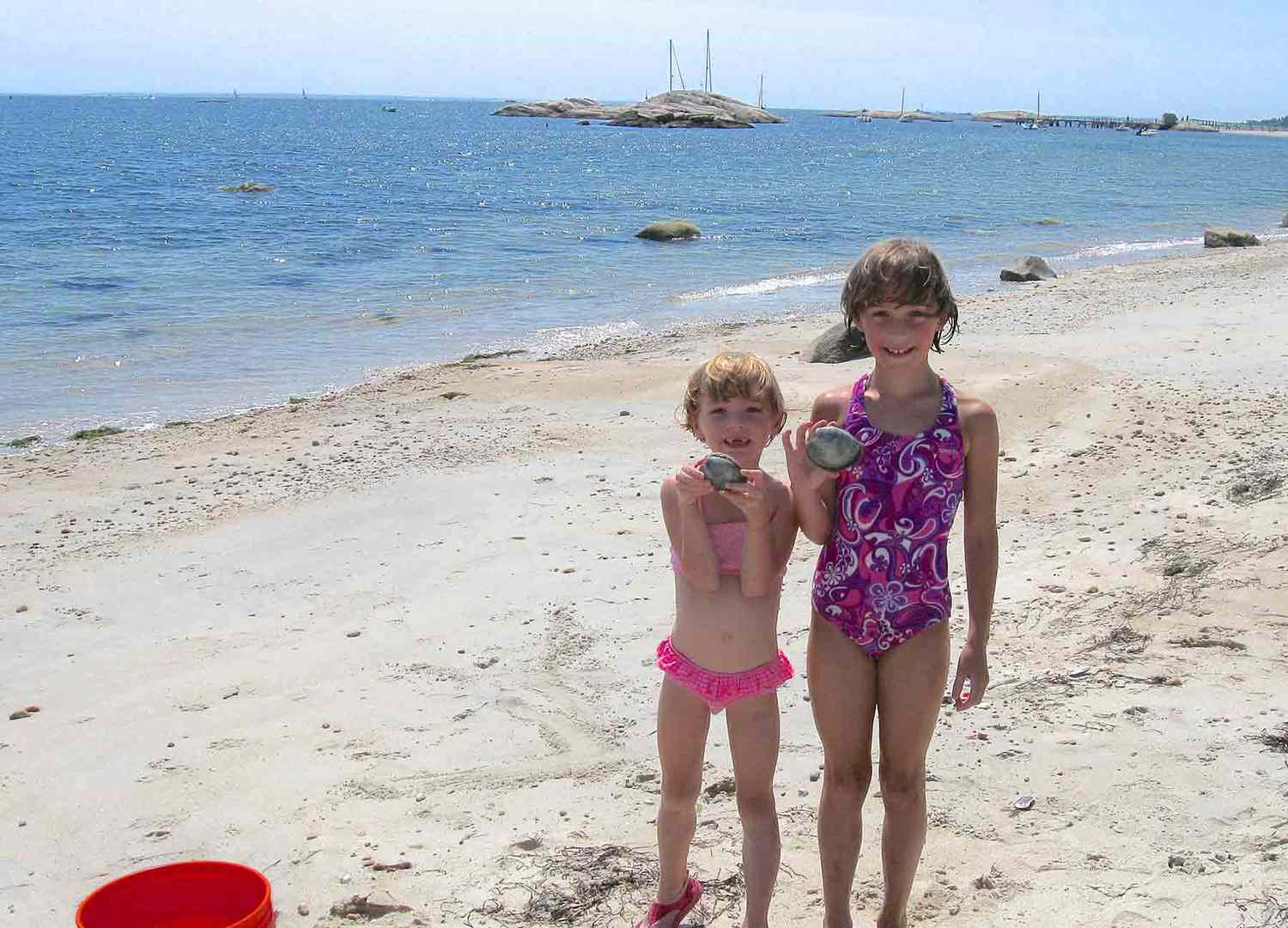Piper and Alden with a couple clams we dug. Elise Bauer