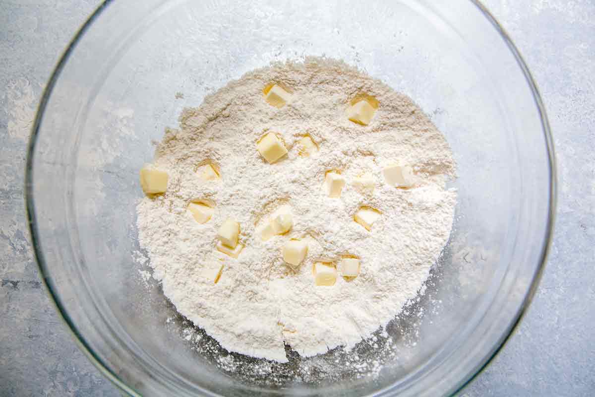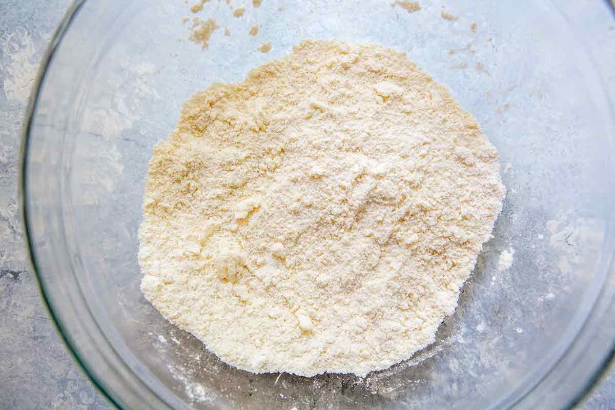Cut the butter into small cubes and use your clean hands to work the pieces of butter into the flour until the mixture resembles a coarse meal.