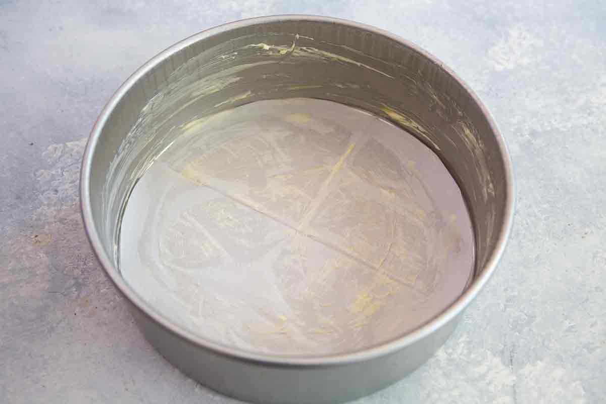 Generously butter an 8- or 9-inch (23cm) round cake pan with 2 inch (5cm) sides. Line the bottom of the pan with parchment paper and butter the top of it as well.