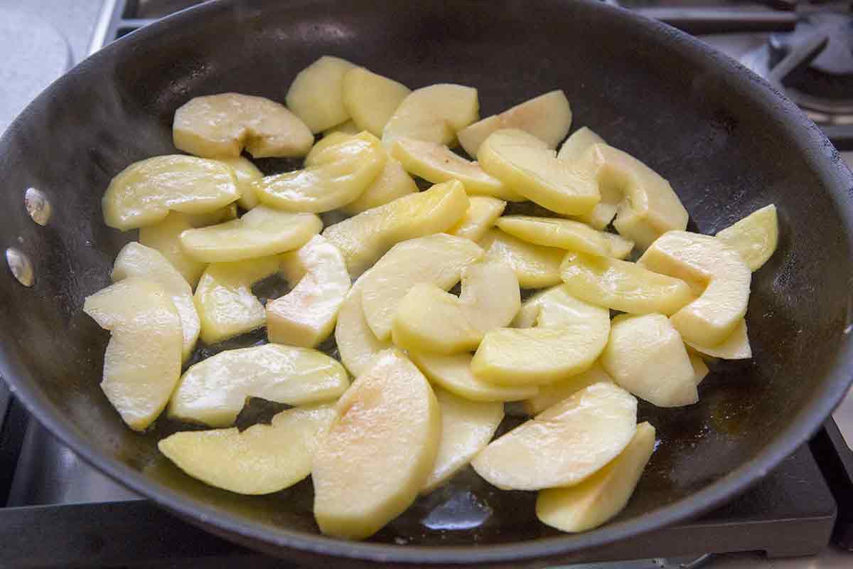 Add the apple slices and the remaining butter to a large frying pan and cook on medium low heat, stirring occasionally, until the apples are tender, about 10 minutes. Remove from the heat.