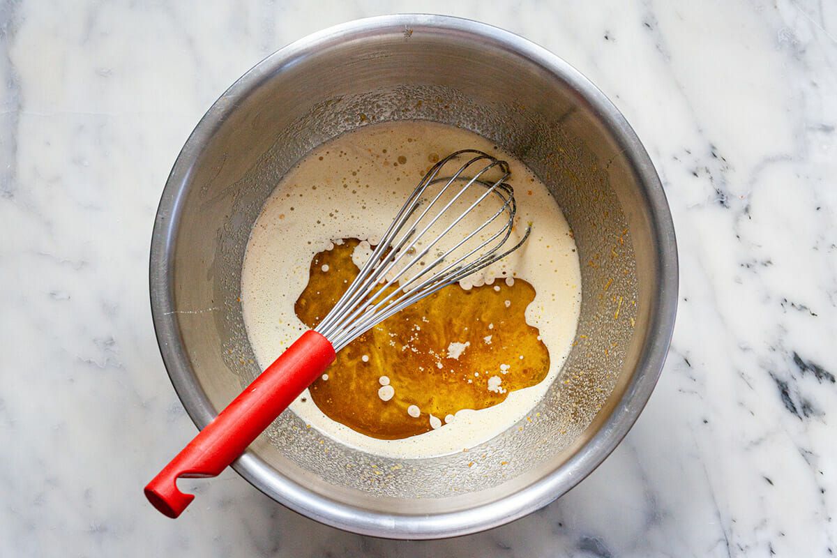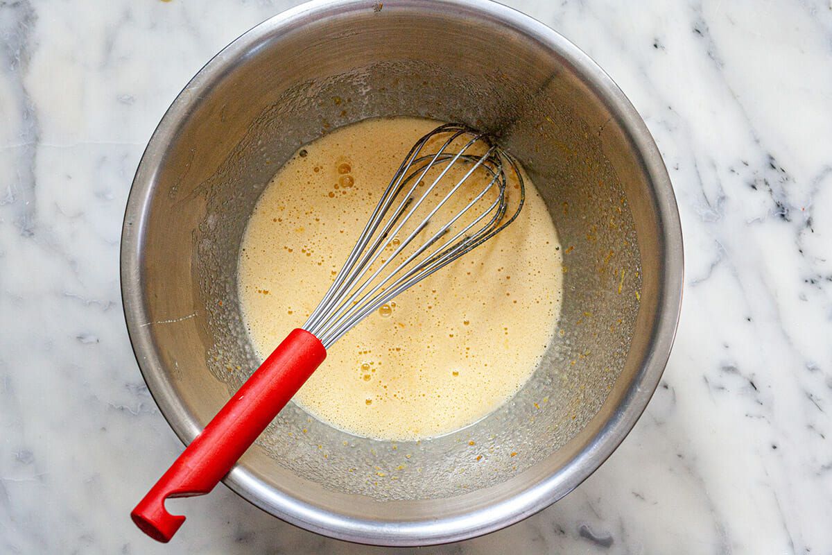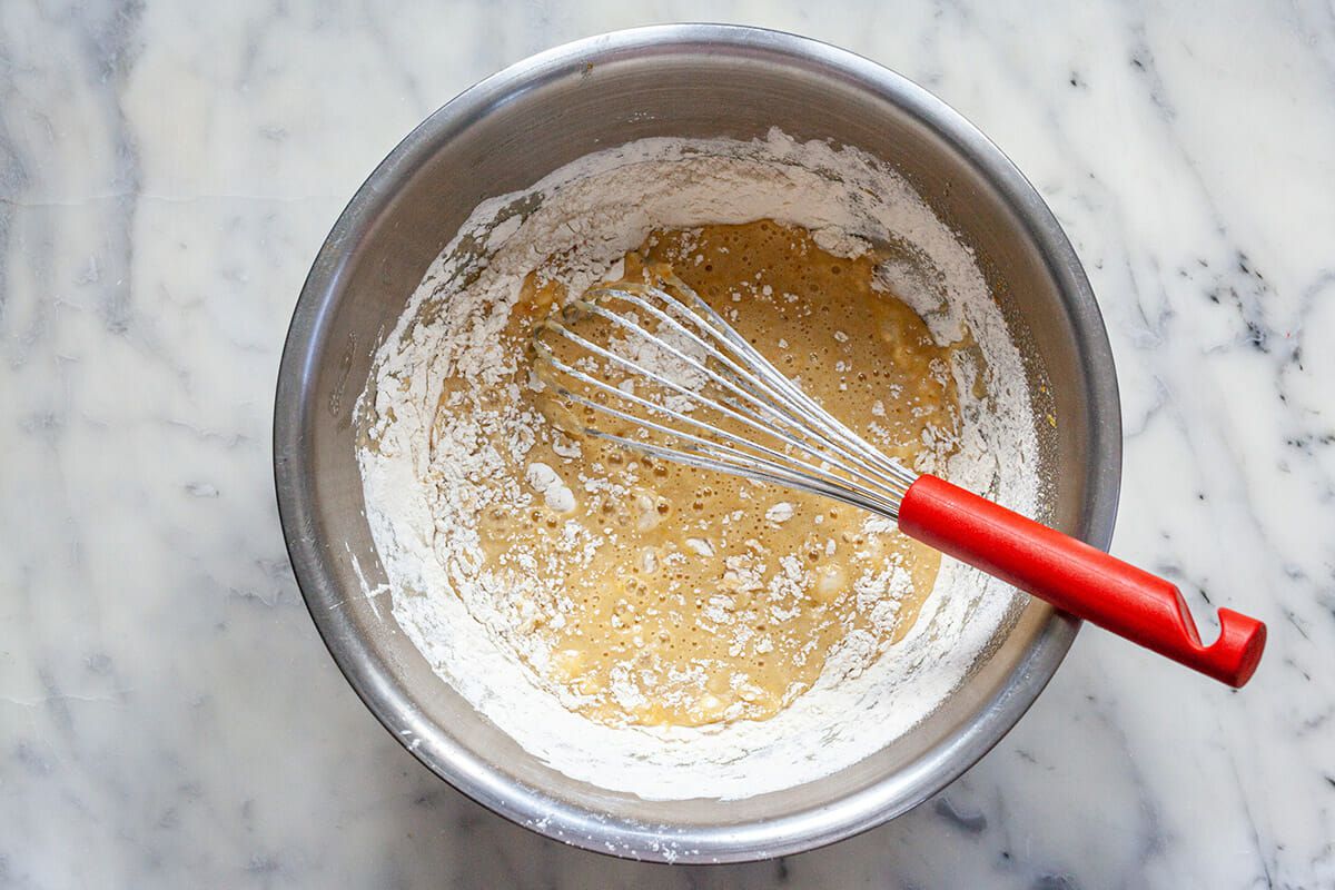 Add the dry ingredients to the batter and whisk just until smooth.