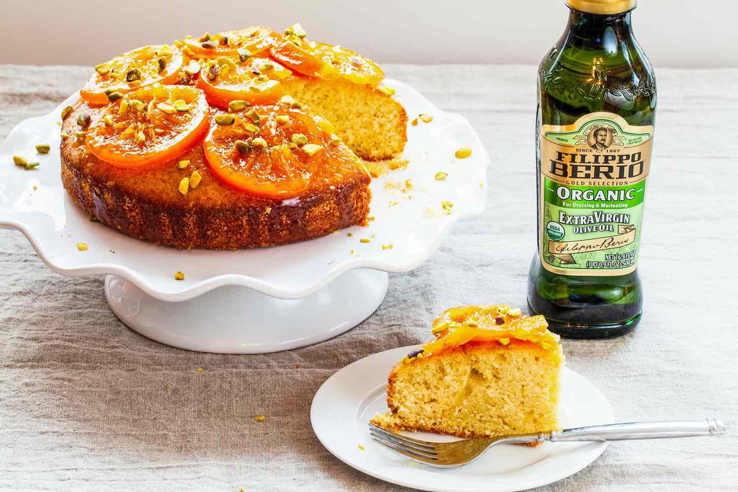 The flavor of an olive oil cake is earthy and floral, especially when you incorporate the rich flavor of Filippo Berio Organic Extra Virgin Olive Oil.