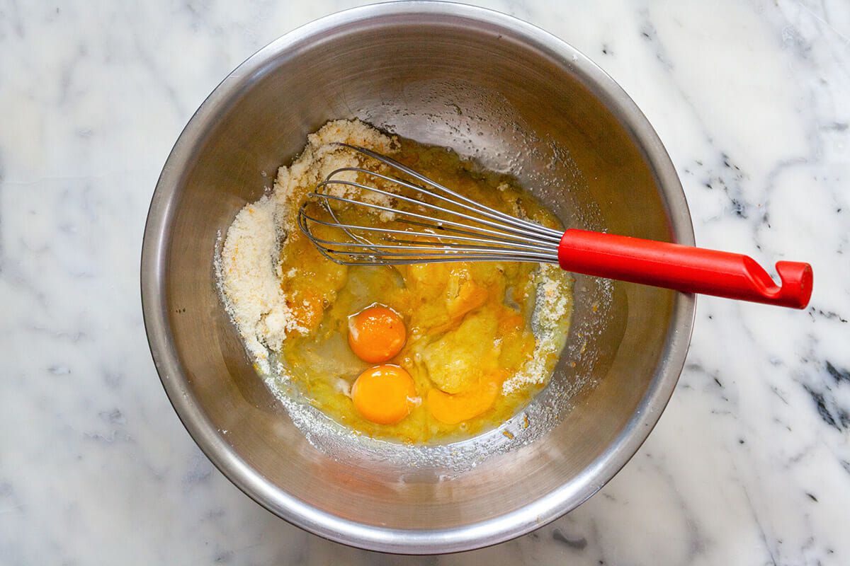 For the most part, this is an incredibly simple cake, mixing dry and wet ingredients together and baking for 35 minutes or so. One trick we've got up our sleeve here to take the flavor up a level: rub the citrus zest into the sugar before incorporating to make it super fragrant and flavorful.