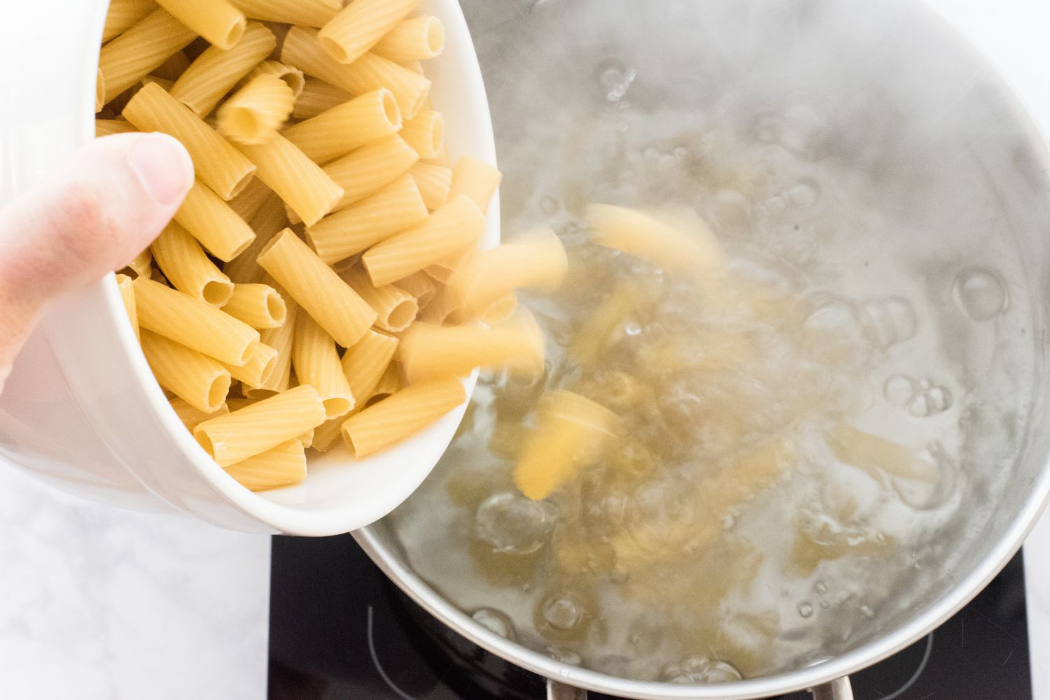 Add the rigatoni to the water and cook according to the package instructions (usually 8 to 9 minutes) until tender. Be sure to stir the pasta occasionally to prevent clumping.
