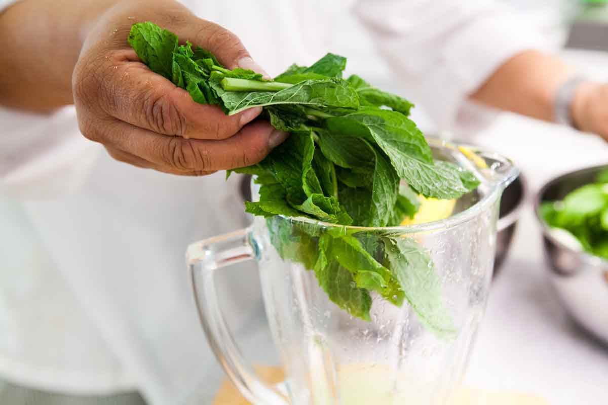 1 1/4 cups packed (spearmint) mint leaves (about a large handful), woody stems removed