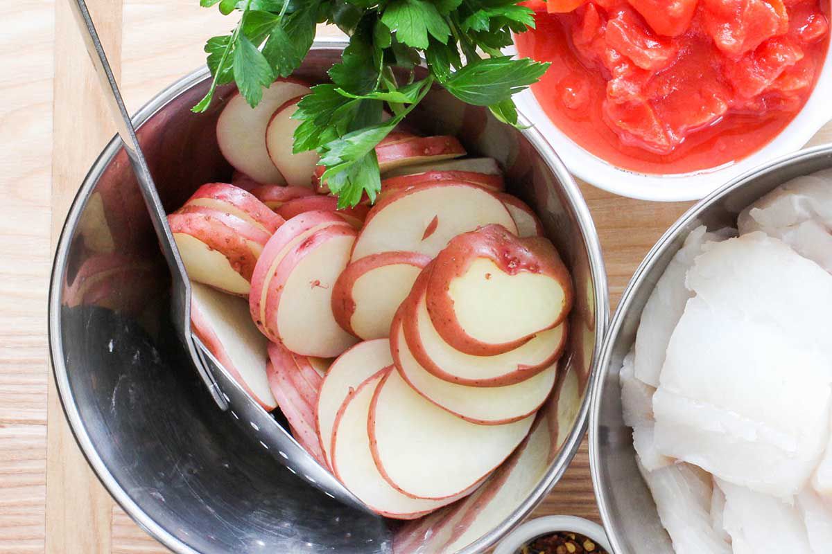 The fish stew is wonderfully refreshing on the spring table, when we’re all looking for lighter fare and anything that doesn’t take too long to cook. It also makes a great dinner party main course if you need something easy and last-minute for guests.