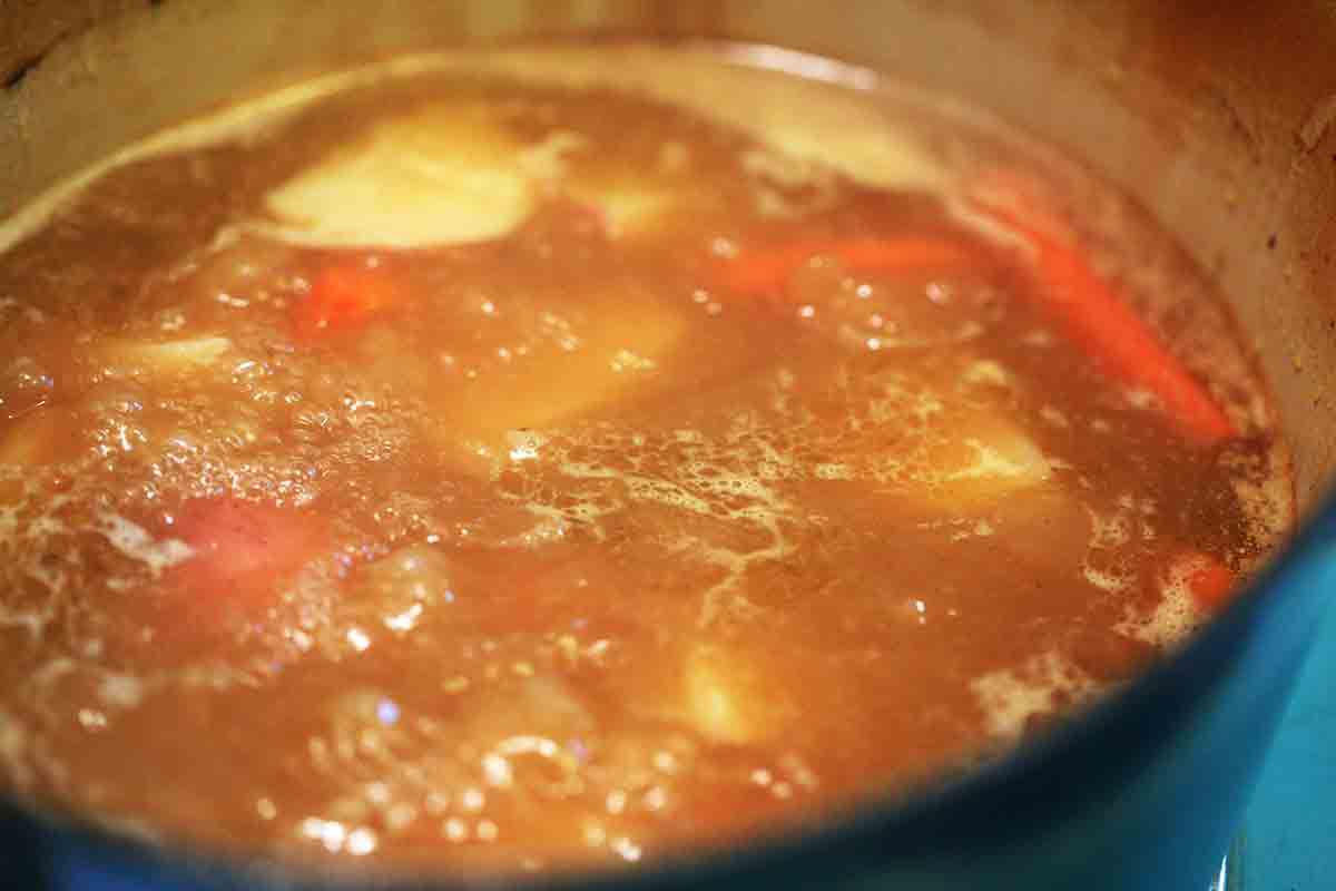 Bring liquid in pot to simmer over medium heat. Add carrots; simmer 10 minutes.