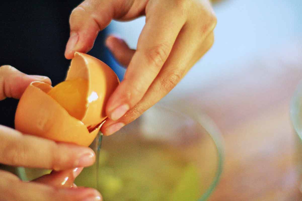 If you get a piece of egg shell in the separated eggs, scoop it out with a larger piece of shell.