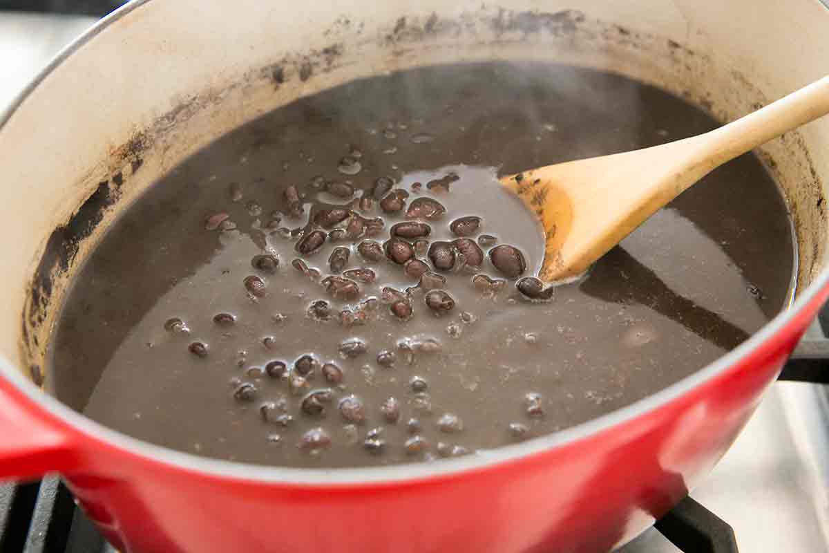 Place dry black beans in a bowl and add enough water to cover the beans by two inches. Let sit overnight.