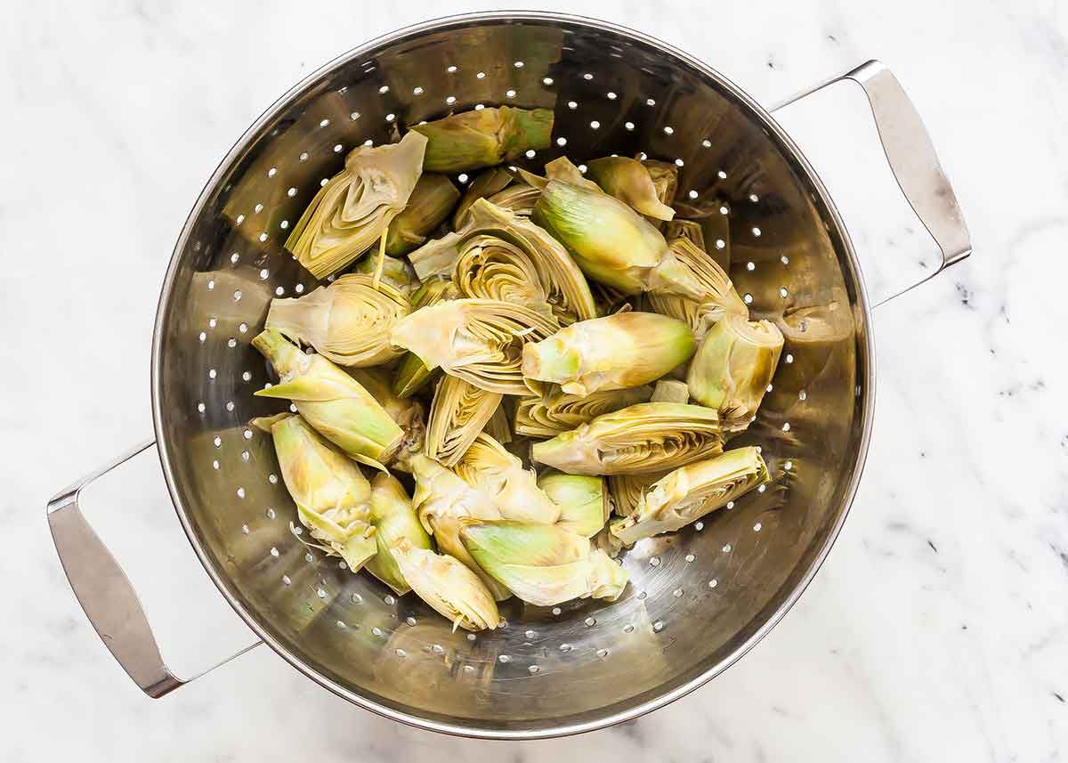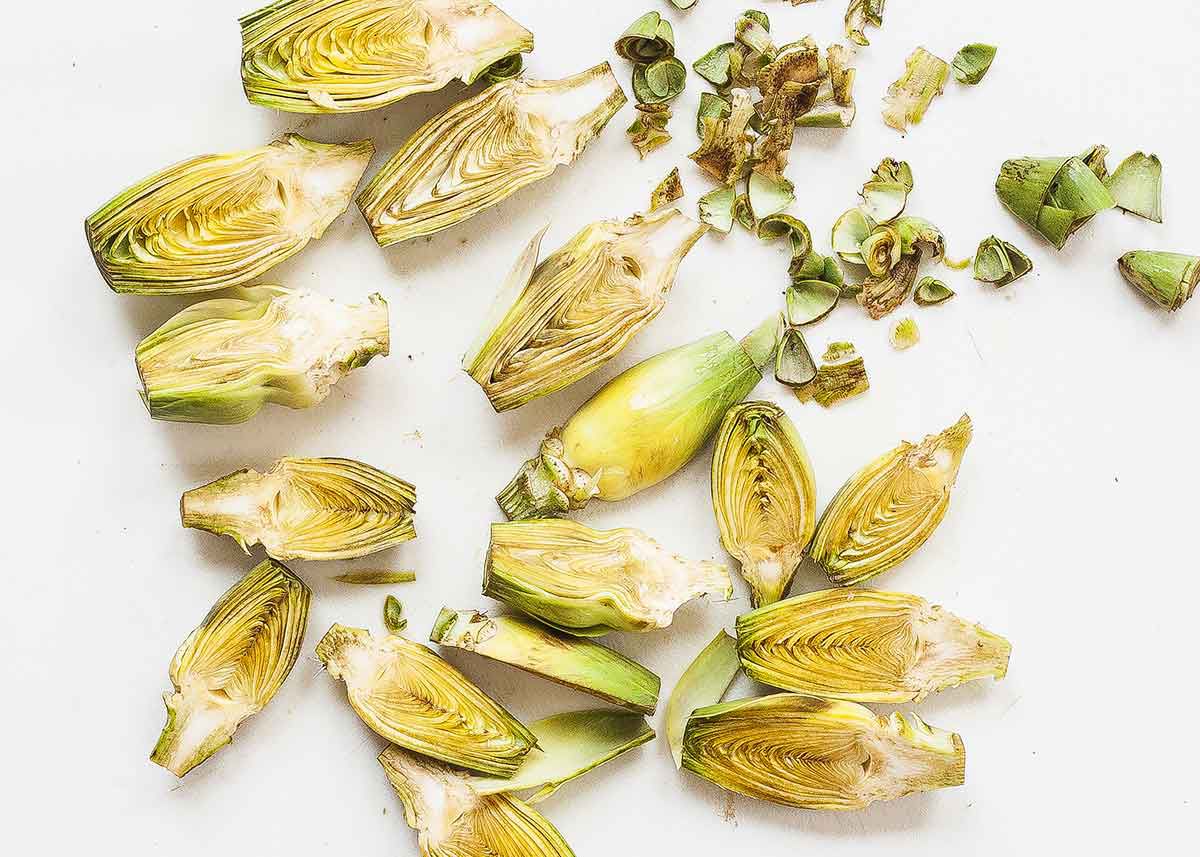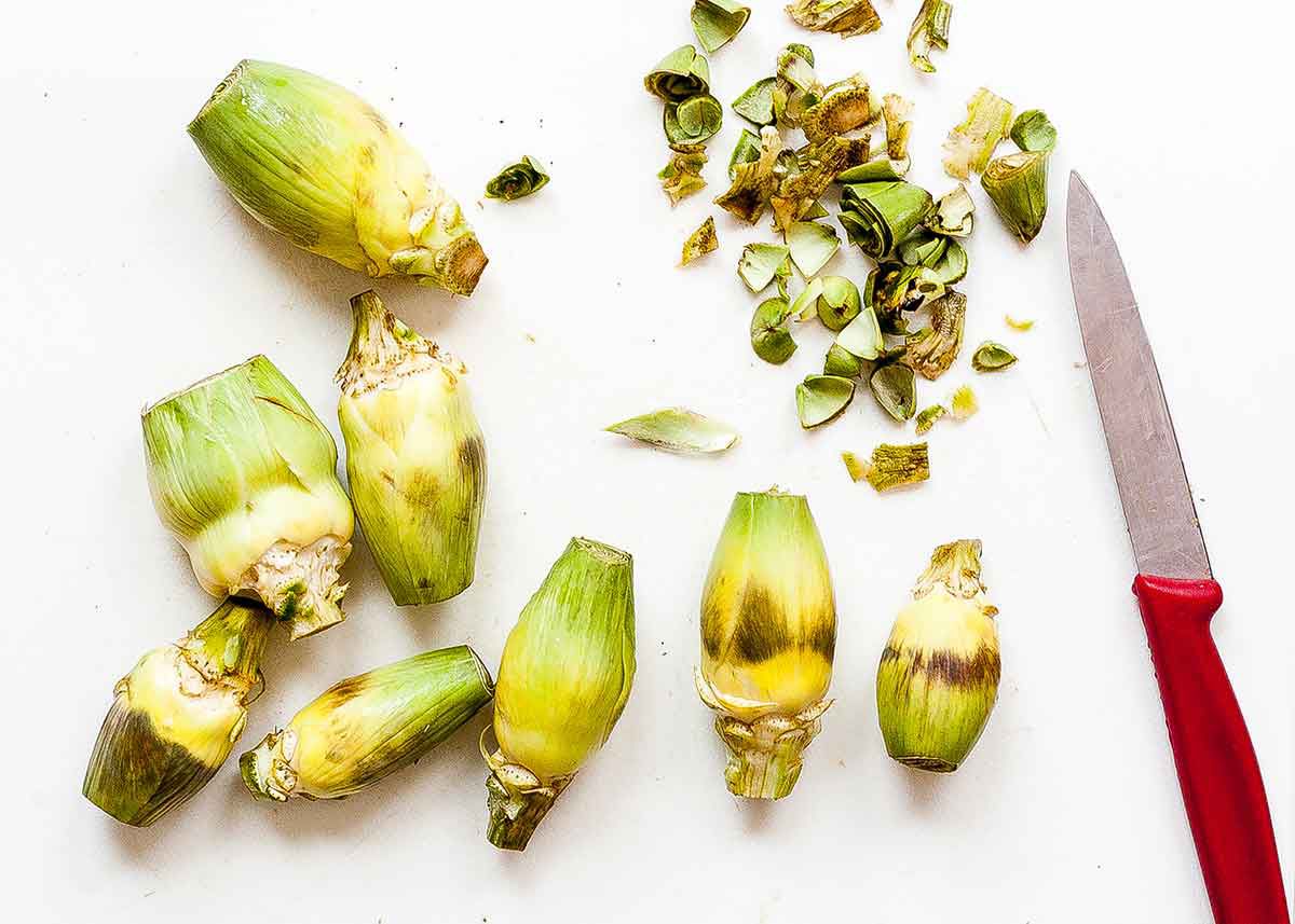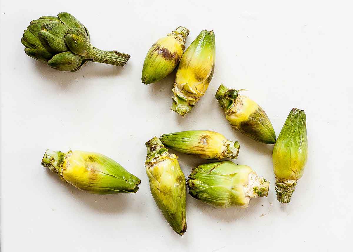 Unlike larger artichokes, more parts of these small ones are edible. You don't have to scoop out the choke, you can eat it with the rest of the heart and tender leaves.You can also simmer the discarded leaves in water for an hour to make an artichoke vegetable stock for soup, so nothing goes to waste.