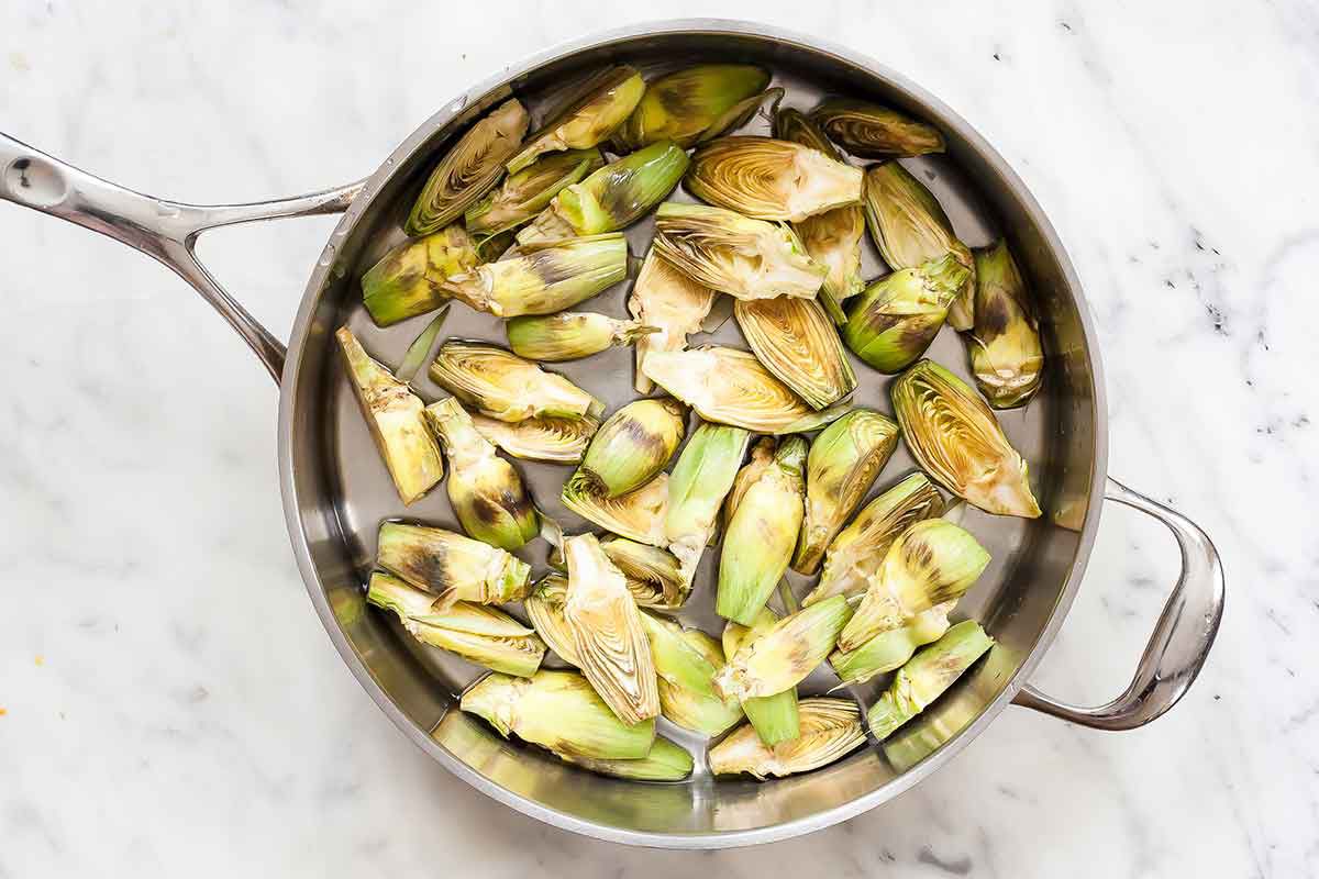 These sautéed baby artichokes are easy to prepare and combine flavors that work naturally well with artichokes. They can be eaten alone, mixed in with pasta or risotto, or baked onto pizza.