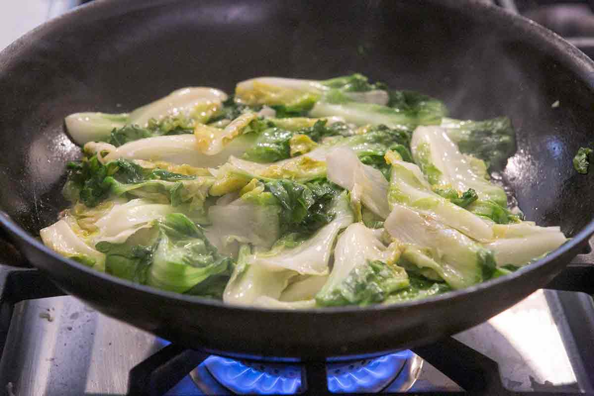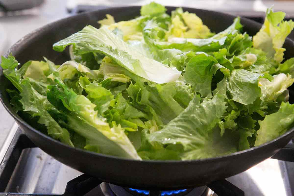 When the escarole starts to wilt and is barely cooked through, remove from the heat.