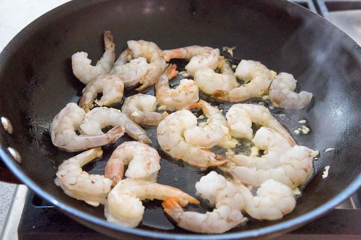 Sauté the shrimp and garlic: