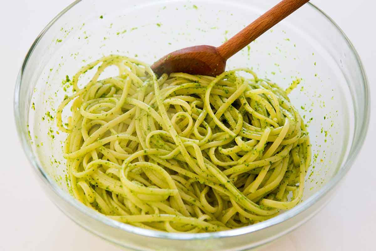 Toss the pasta with the pesto: