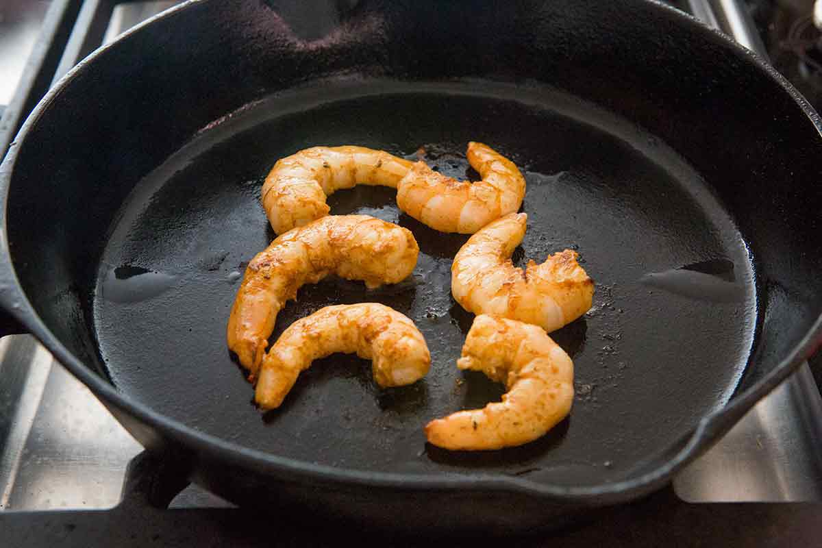 The shrimp shouldn't be completely cooked through; they will continue to cook during the next step.