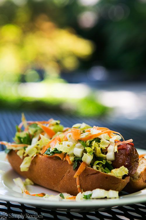 Hot Dogs with Sriracha and Asian-Inspired Slaw