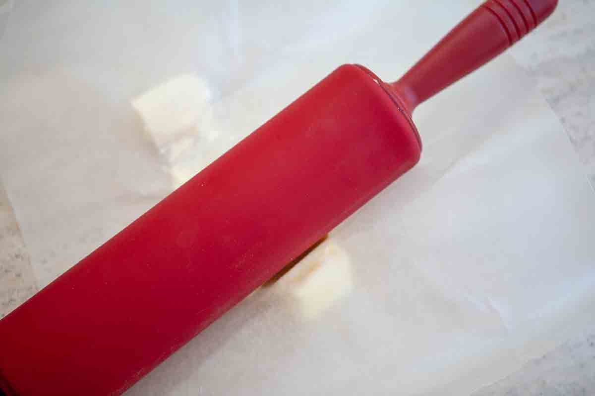 - Put the stick of butter between two pieces of wax paper and roll out with a rolling pin.