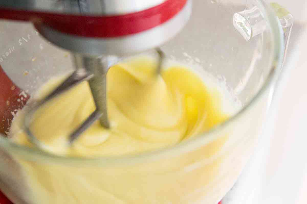 Add the oil and vanilla; continue beating mixture until thick and foamy.