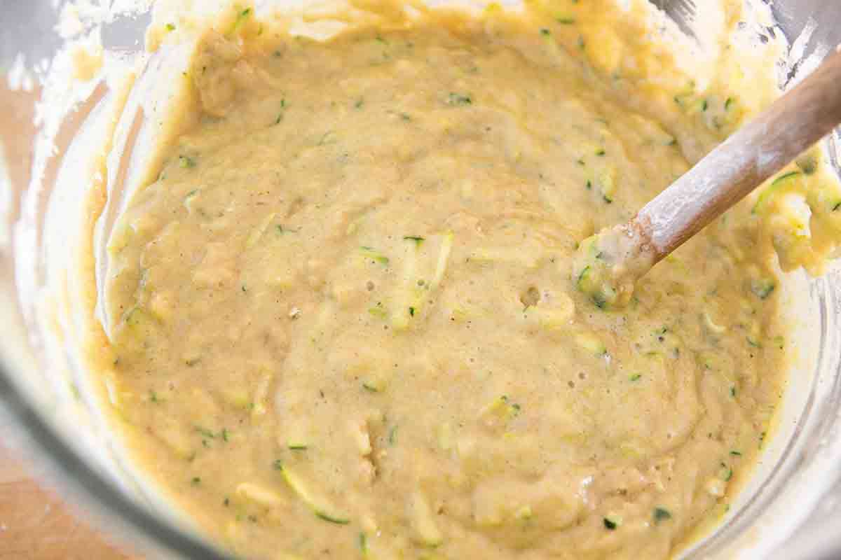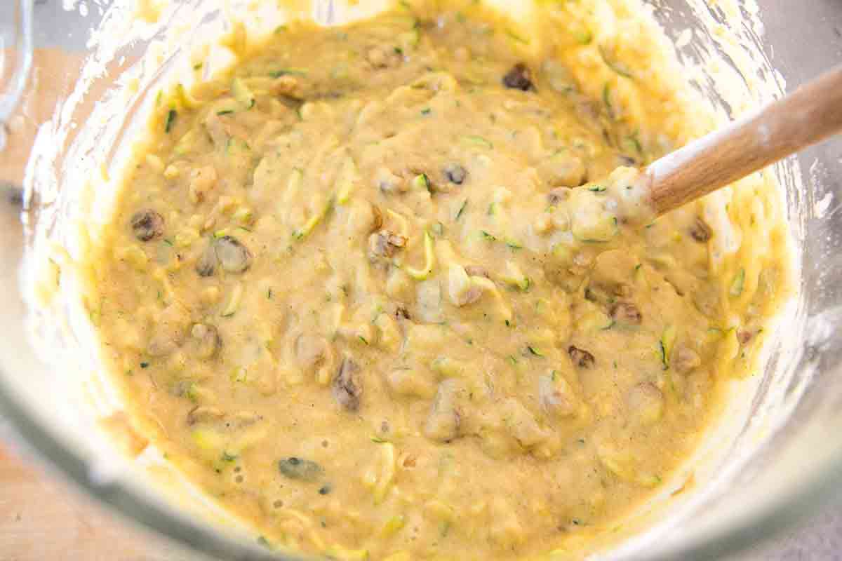 Remove the bowl from the mixer and with a spoon, stir in the zucchini and pineapple.