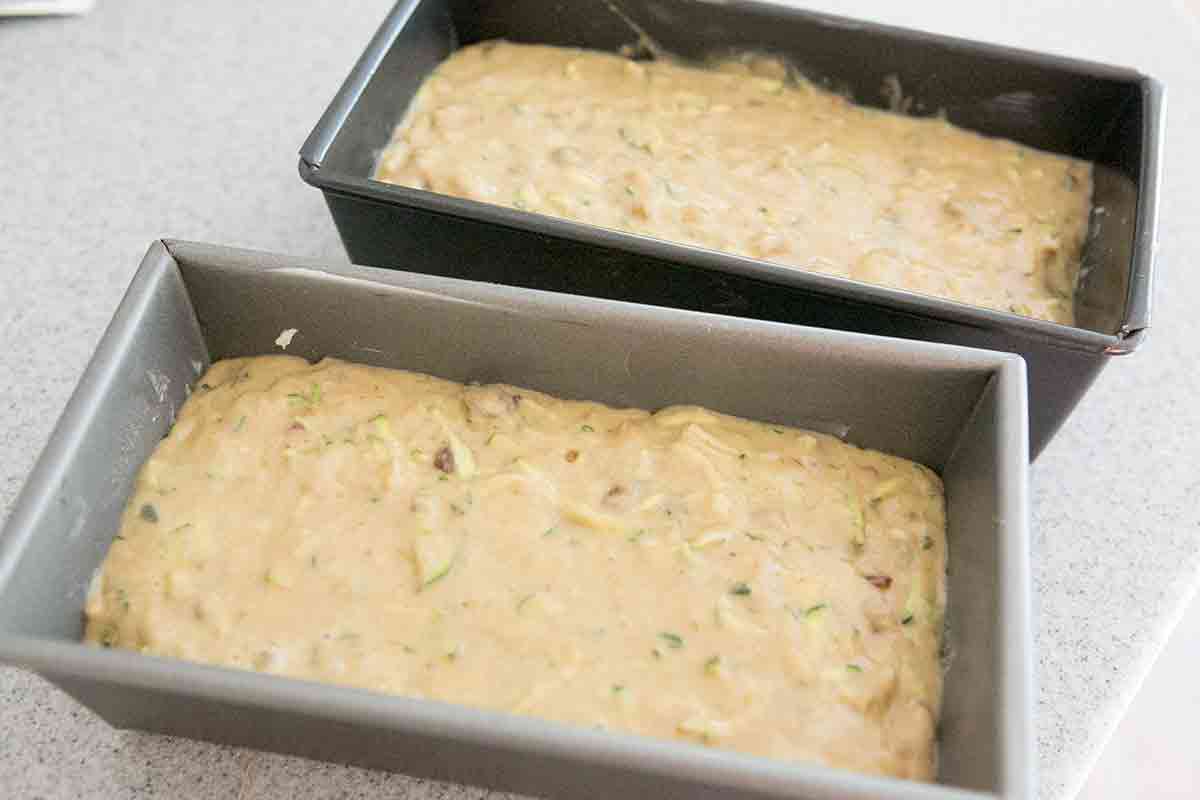 The original recipe called for 2 cups of zucchini, but I like to make it with 3, just because I have so much zucchini that needs to be used up. More zucchini yields a moister loaf.