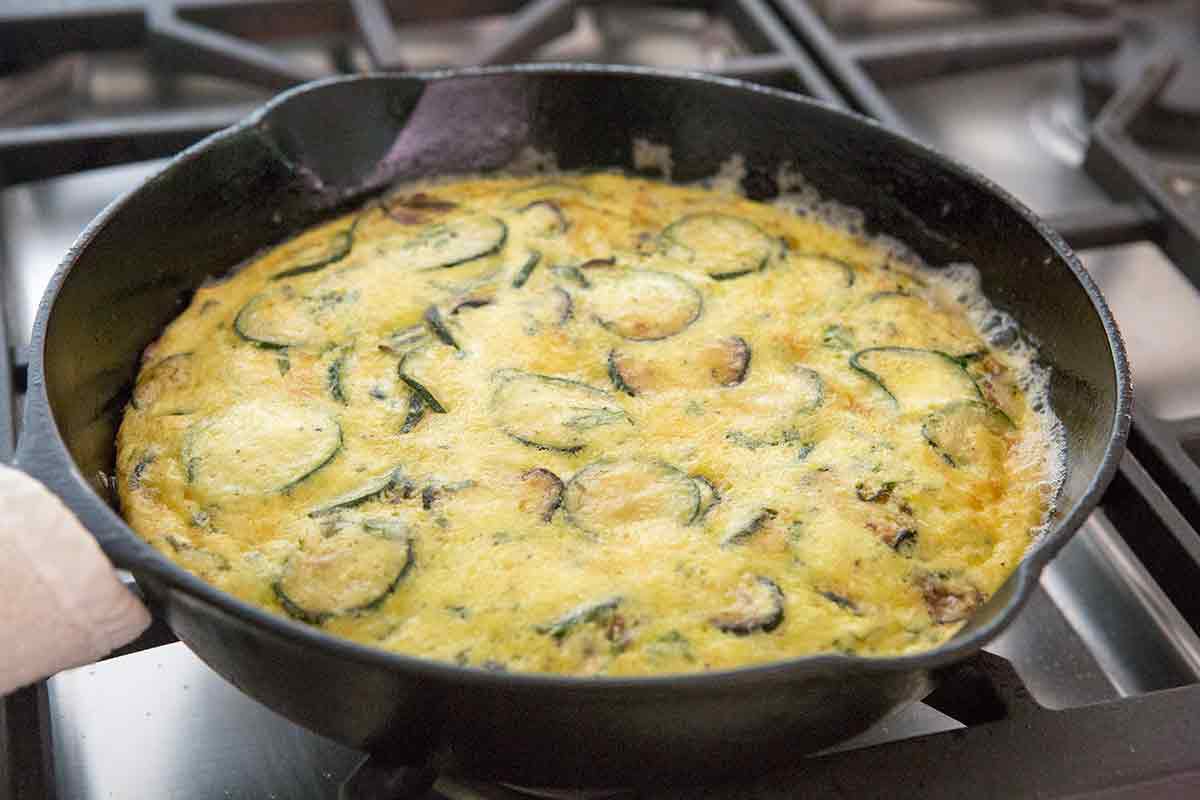 Elise Bauer (Alternatively, instead of using the broiler, you can place a plate face-down on top of the skillet. Flip the skillet over to release the frittata on to the plate. Slide the frittata from the plate back into the skillet. Let cook for a couple of minutes more until the bottom browns. Let rest in the pan for 2 to 3 minutes to allow it to set.)
